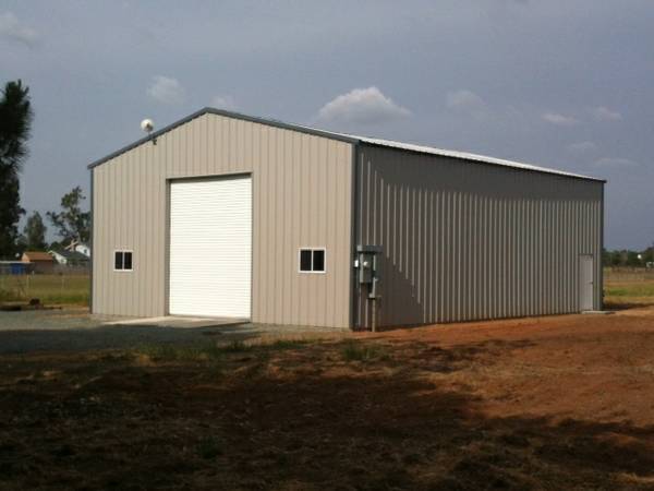 Steel Framed red iron buildings with heavy 26 gage roofing and siding.