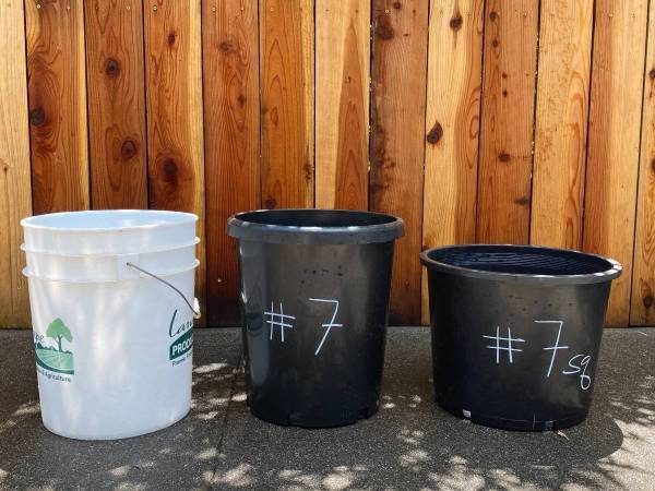 7 gallon (new heavy duty injection molded pots) for $6.25 each (50+ pieces for $4.95 each, 500+ pieces for $4.50 each), pallet price please call, a pallet holds 720 pieces