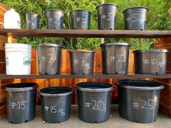 20 gallon (new heavy duty injection molded pots) for $15 each (10+ pieces for $12 each, 50+ pieces for $10 each), pallet price please call, a pallet holds 340 pieces