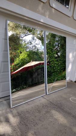 2 mirror doors w white frame nice for home GYM, studio, yoga room other project , one is $100,+ one w crack for free