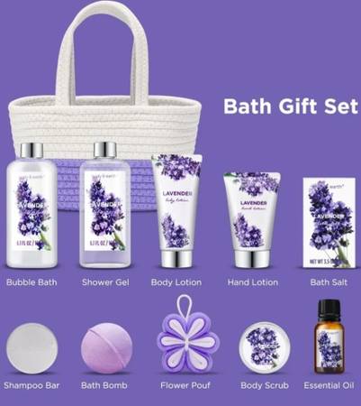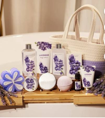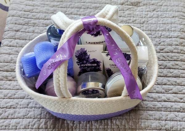Body and Earth Basket with 10 lavender bath and body products. See photos for all products. You can give each lavender product as a separate gift - such as a "thank you" gift or a hostess gift. New....