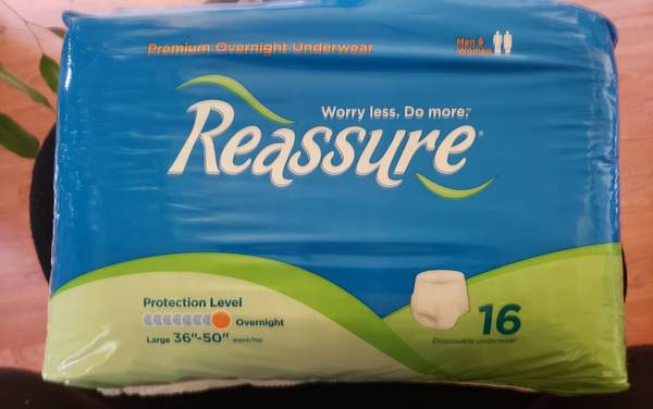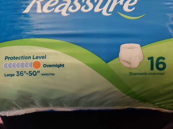 Adult overnight protection, size 36” to 50” 3 packs of 16 each, New, $6 each or all 3 for $18