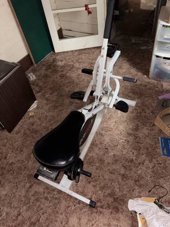 Old Health Rider still works, smooth operation, electronic counter still attached but not working (probably needs new battery), supplemental weights included.