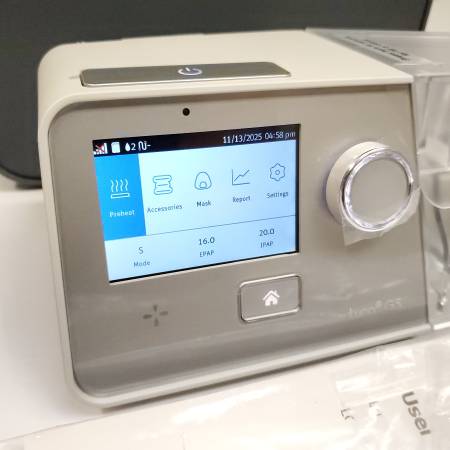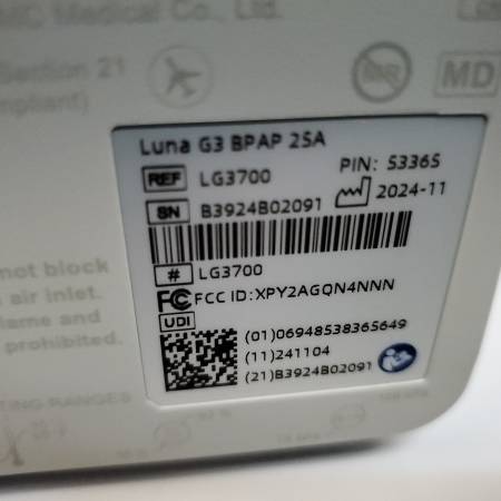This is New Luna G3 BPAP 25A Bi-Level CPAP Machine with Heated Tubing, Power Adapter, 3 New filters, User Manual and Carrying Bag. It has 0 working hours on it. See pictures.