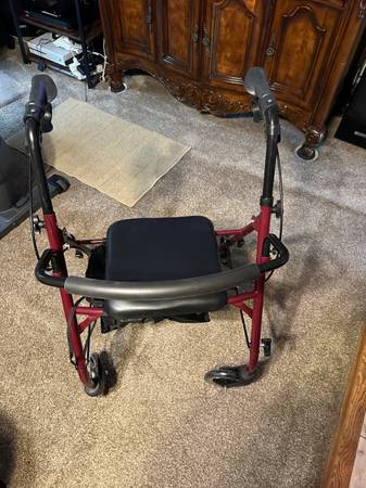 new burgundy walker with padded seat. Folds flat.