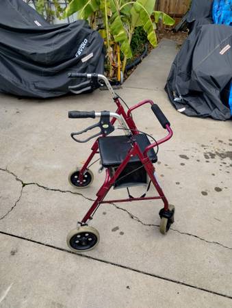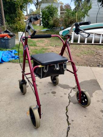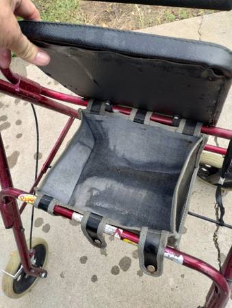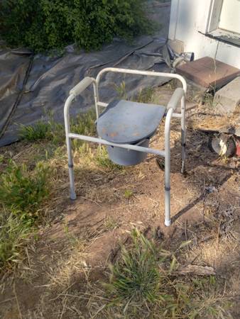 The like new walker with a padded seat that has a storage area under it is $4.0.00. The unused portable toilet is $25.00, or both for $60.00. Cash only, no trades, no meeting halfway.