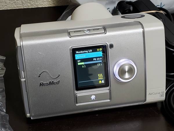 This is pre-owned ResMed AirCurve 10 ST BiLevel/CPAP Machine with Heated Humidifier in very good working and cosmetic condition. It was sterilized with Ozone Generator.