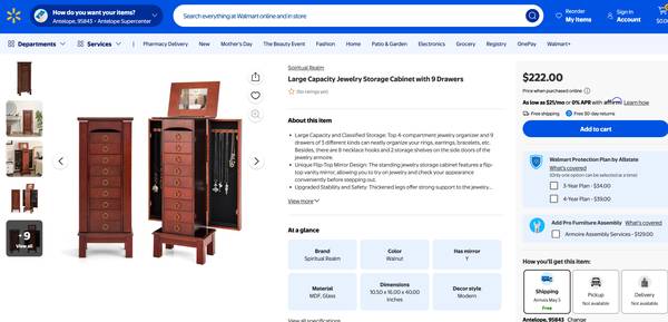 Large Capacity and Classified Storage: Top 4-compartment jewelry organizer and 9 drawers of 3 different kinds can neatly organize your rings, earrings, bracelets, etc. Besides, there are 8 necklace hooks and 2 storage shelves on the side doors of the jewelry armoire.