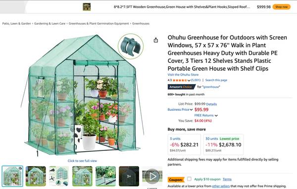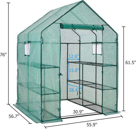 Large space: Constructed with 12 wired shelves – 6 on each side, and measures 57” (L) x 57”(W) x 76.8”(H), which makes space for all your blooming flowers, sprouting plants and fresh vegetables