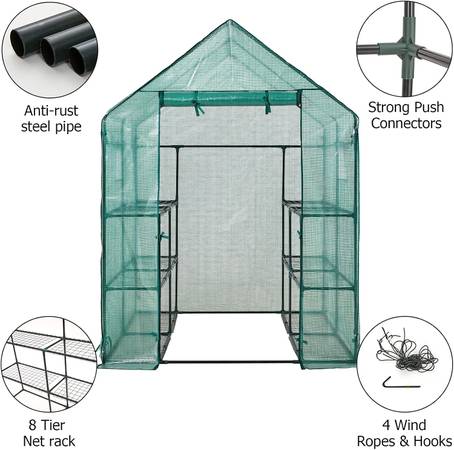 Warm yet Ventilated: With the zippered roll-up door and 2 screen side windows, you can regulate external airflow to keep the plants warm and provide better air circulation for the plants, and works as observation window that makes it easy to peek inside