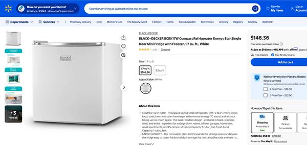 BLACK&DECKER (BCRK17W) Single Door Compact Mini-Refrigerator with Freezer, Energy Star, 1.7 cu. ft., White