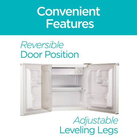 CONVENIENT FEATURES - A reversible door, leveling legs, and adjustable temperature control (33.8 degrees Fahrenheit at the lowest setting) make this mini fridge even more practical. The small freezer (8 inches wide x 2 inches tall) fits ice packs, most frozen dinners, and the included ice tray