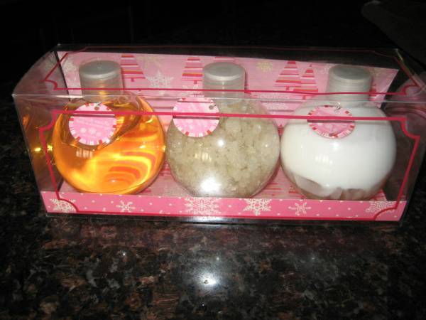 pic #21. 3 bottle pink bath set in box, new, tag price $12 ask $5
