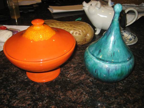 pic #10. beautiful orange and green container (sold) with lip $5/each