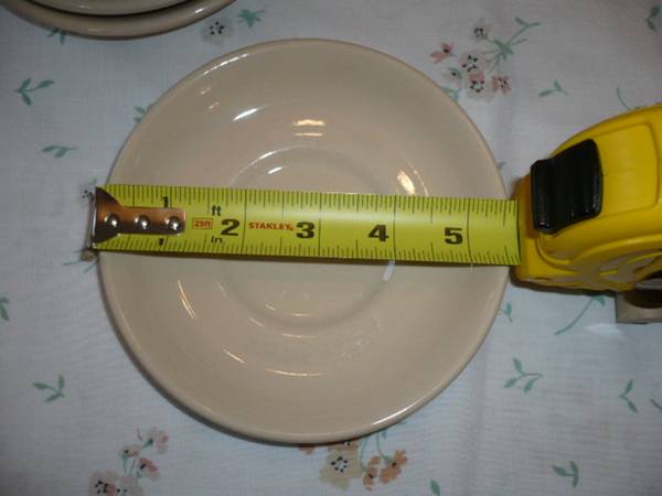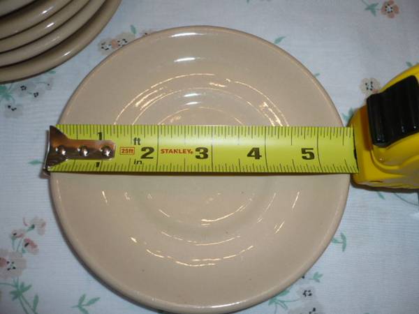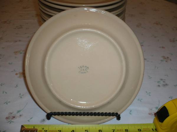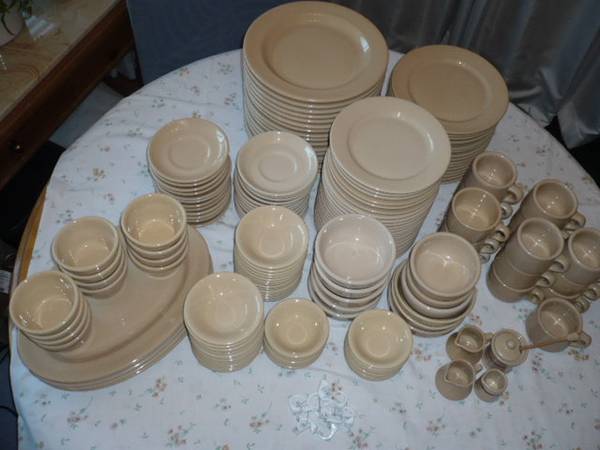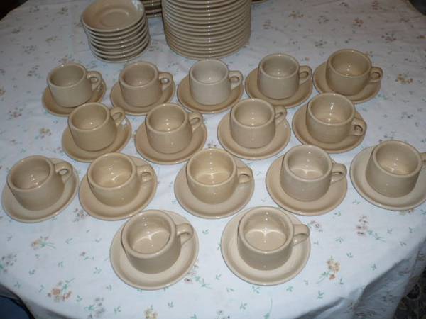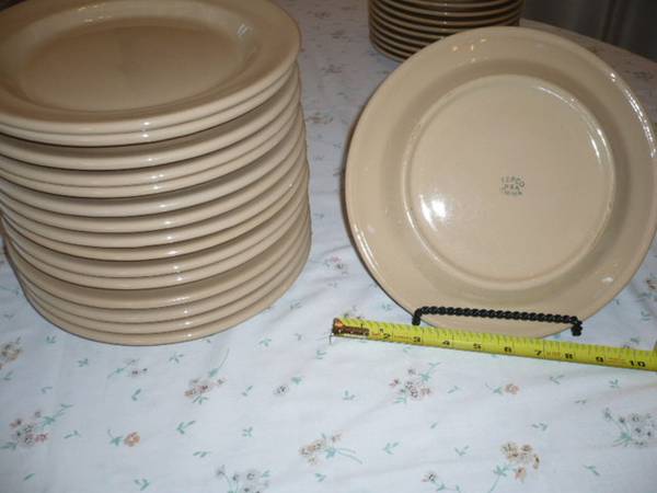 Large set of vintage restaurantware. Tepco, Buffalo, Wallace China. Sunglow color. See photos. Minor wear, but in great shape. 16) 10.5" plates 16) 9" plates 23) 8" plates 12) 5.5" saucers-slightly...