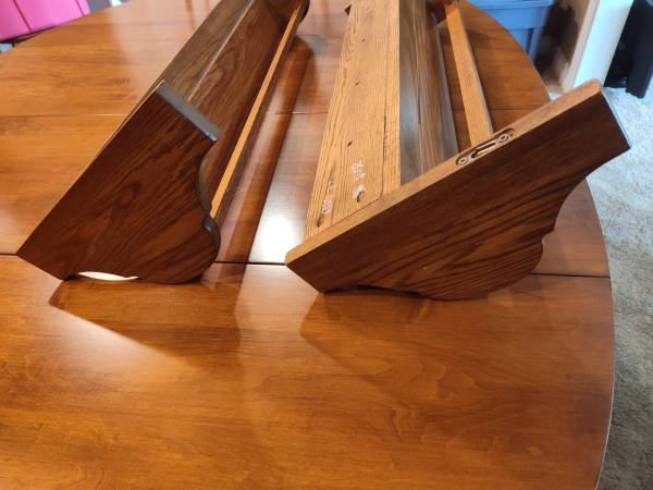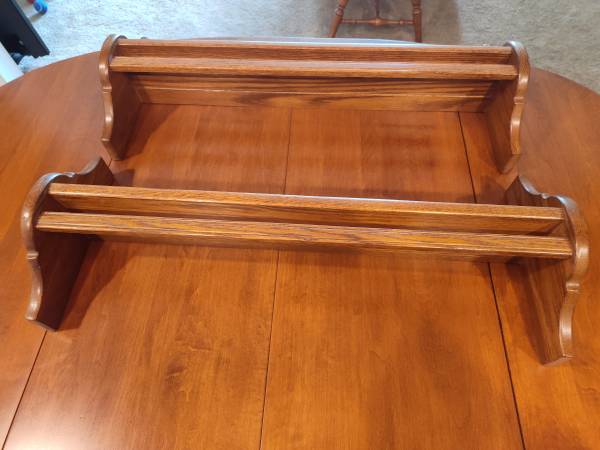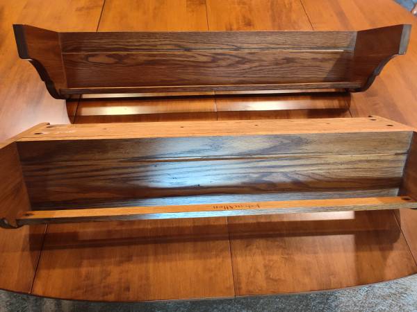 ETHAN ALLEN WALL DISPLAY SHELVES SOLID OAK PLATE GROVES FRONT RAILS CUP HOLDERS EXCELLENT CONDITION ASKING $90.00 CALL OR TEXT THANK YOU. 30"WIDE 12"TALL 6"DEEP