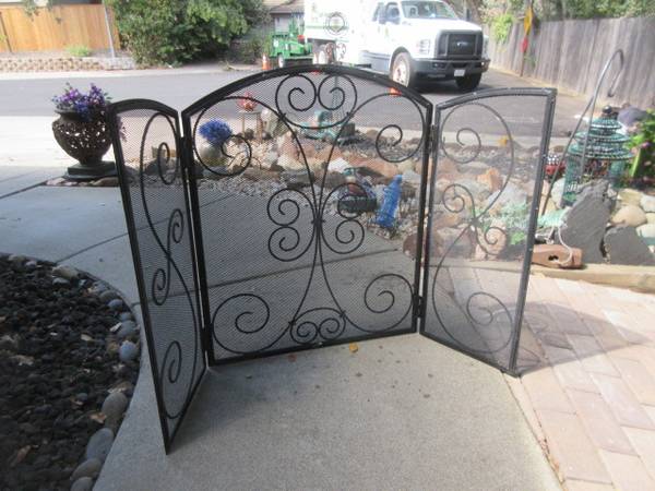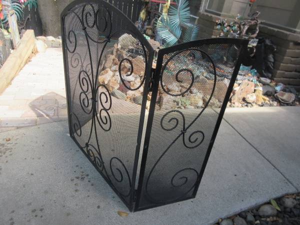 Good used fireplace screen. 30.5" high, 25" across the main panel, 12" across the wings. Hinges are fine. Sturdy enough.