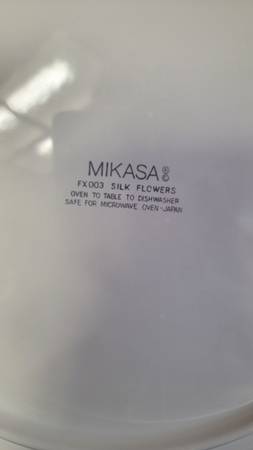 8 Piece SERVING Set. Chop Plate/Covered Vegetable Bowl, Bowl, Cake Plate and Server, MIKASA SILK FLOWERS. THIS AUCTION IS FOR THE BEAUTIFUL MIKASA SILK FLOWERS SERVING SET AND CAKE SERVER SET! It consists of a LARGE OCTAGON CHOP PLATTER, AND LARGE VEGETABLE BOWL. AND CAKE PLATE AND SERVER. Each piece is signed "MIKASA Continental, F3003 SILK FLOWERS" and Oven to Table to Dishwasher, Safe for Microwave." Chop plate and bowl have Japan-E on the base. All are the same pattern. Delicate Mauve pink flowers and teal green leaves and UNIQUELY SHAPED octagon plates! This pattern F3003 was discontinued in 2006.