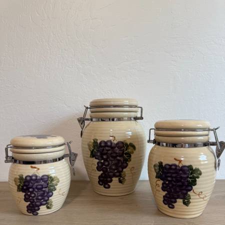 Vintage Grape Ceramic Storage Jars - Set of 3 - household items - by...