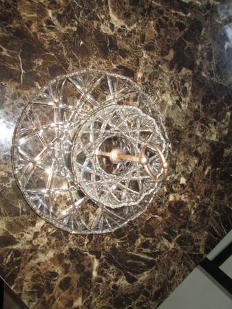 Selling 2-tiered glass serving platter for $10. height= 10" length= 12"