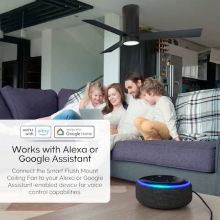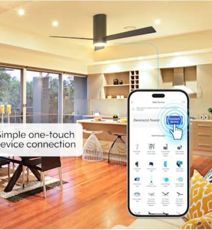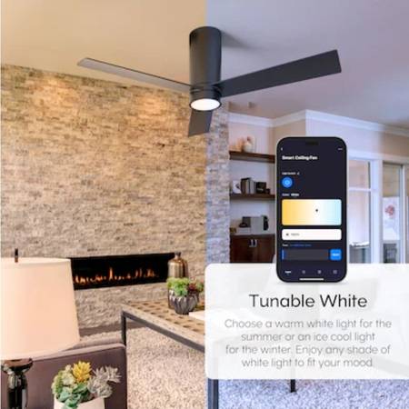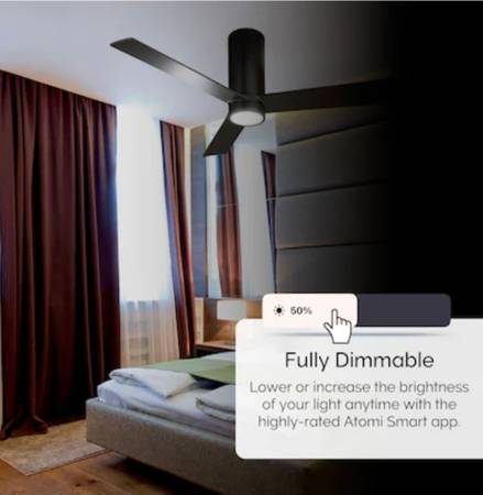 ATOMI SMART WIFI PEARL BLACK 3-BLADE MODERN CEILING FAN. REMOTE OR APP CONTROL WITH MULTI-COLOR LED LIGHT KIT.