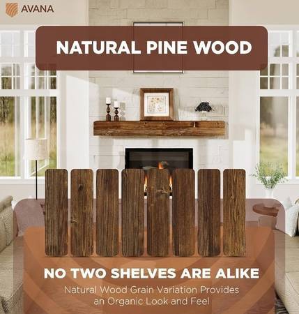 NEW IN BOX SOLID PINE 5 FT. X 8 IN. X 5" MANTEL/FLOATING SHELF. NOT SOLID "ENGINEERED WOOD" OR SOLID WOOD VENEER BUT HANDMADE FROM PLANKS RIGHT OFF THE TREE. RUSTIC BEAUTY IN ITS TRUEST SENSE. SEE...