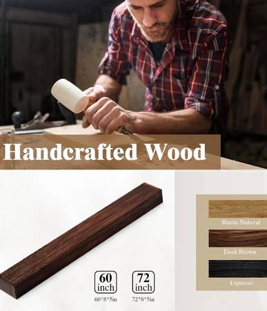 NEW IN BOX 5FT. SOLID WOOD RUSTIC BEAM MANTEL. MEASURES 60" X 8" X 6". ALSO USED AS FLOATING SHELVES. BEAUTIFUL BRUSH FINISHED MEDIUM WALNUT FINISH ON SOLID PINE. SEE MORE GREAT MANTELS, FLOATING...