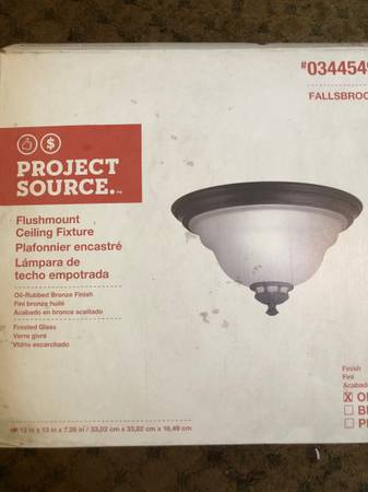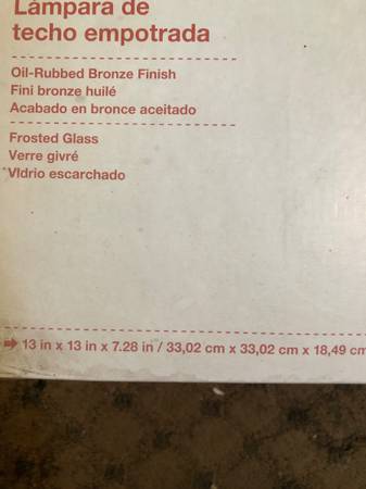 Flush mount ceiling light fixture. Oil rubbed bronze finish. Frosted glass. 13” x 13” x 7.28”. News in box. &5