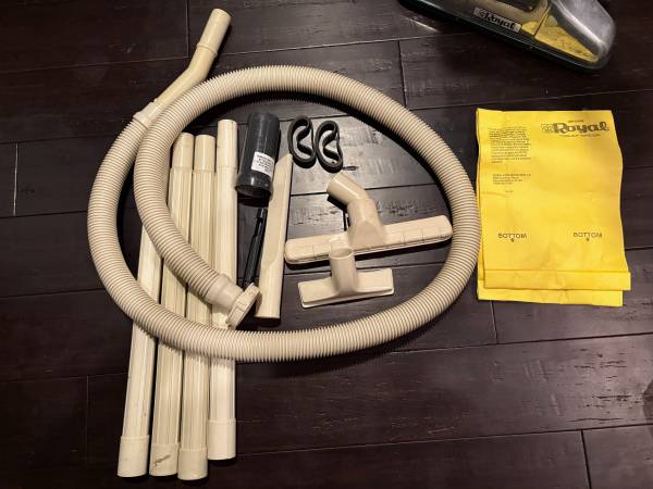 This 1990's Royal Model 882H is a classic commercial, heavy-duty yet lightweight deep cleaning vacuum! -- hose + accessories -- belts -- bag (bags are inexpensive and still made) -- long cord