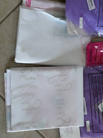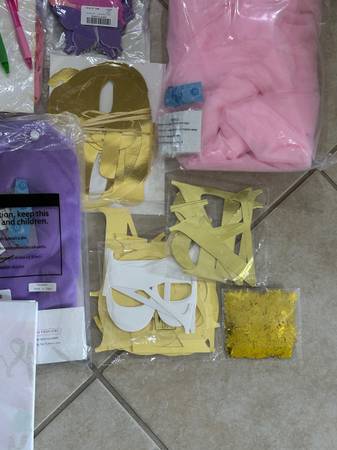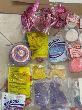 So much stuff. 99% is brand new. Includes tulle table skirts, packs of various decorations, balloons, banners, center pieces, balloon arch with butterflies, etc. Well over $200 in decorations. Zzyzx
