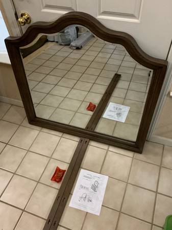 Brand new. Includes hardware and attachments to attach to a dresser. Can be wall mounted as well. Zzyzx