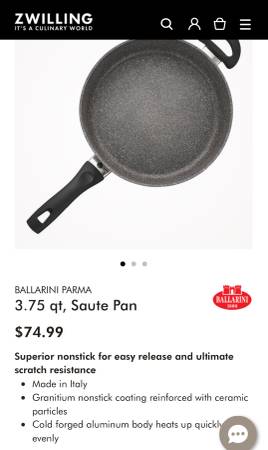 Selling new BALLARINI Parma by HENCKELS 3.8-qt Nonstick Saute Pan