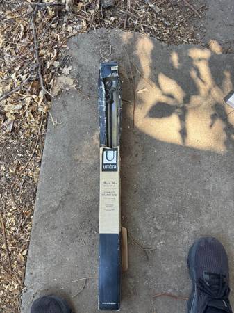 New in box, box is damaged. Umbra curtain rod, Orly pattern. Expandable, 18 inch to 36 inch.
