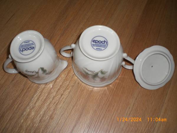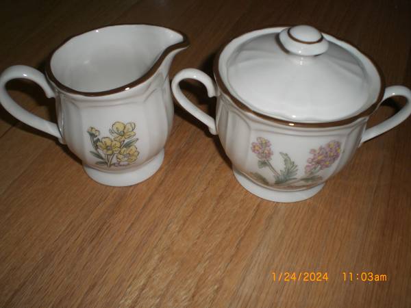 SUGAR BOWL AND CREAMER SET EPOCH KOREA HERBS CHINA CALL OR TEXT CAROL OR JEFF