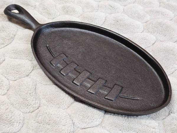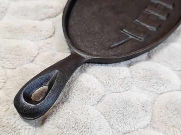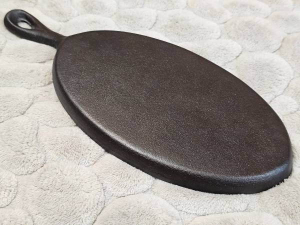 Better than new cuz you don't have to worry about factory seasoning failure - this skillet has been stripped down to bare iron and had 4 layers of seasoning baked on. It's ready and waiting to impress even the most discriminating palate. NO CRACKS, WARPS, OR WOBBLES