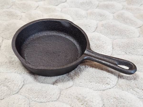 Better than new cuz you don't have to worry about factory seasoning failure - this skillet has been stripped down to bare iron and had 4 layers of seasoning baked on. It's ready and waiting to impress even the most discriminating palate. NO CRACKS, WARPS, OR WOBBLES