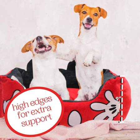 Built For Pets: Our Mickey Mouse rectangular bolster shape was designed for comfort and support. The raised 9" rim helps your cat or dog feel at home. This cozy dog bed also has a non-skid bottom for added safety.