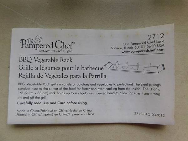 This Pampered Chef BBQ Vegetable Rack Grill #2712 is a must-have for any outdoor cooking enthusiast. Made with durable stainless steel, this rack is perfect for grilling your favorite meats and vegetables. The brand name Pampered Chef speaks for itself, and this product is no exception. Whether you're hosting a backyard barbecue or just grilling up some veggies, this rack is sure to impress. Its unique design allows for easy placement of your food, and the sturdy construction ensures even cooking. Don't miss out on this great addition to your outdoor cooking arsenal. NEW IN UNOPENED BOX.