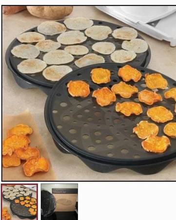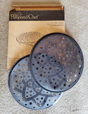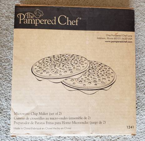 Make a healthy snack in minutes with The Pampered Chef Microwave Chip Maker. Set of 2 stackable trays makes crunchy chips; no oil or frying needed. Also great for sweet potatoes, apples, even zucchini! RETIRED so get them while you still can! BRAND NEW - IN ORIGINAL BOX!
