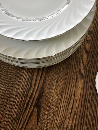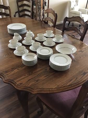 Reverie Royal Jackson Fine China from the 1960’s era. Set is for 8 place setting. Set includes: 8 dinner plates, one has a chip & another has two chips, 8 cups, 8 saucers, 8 fruit bowls, 8 bread plates, 8 salad plates, 1 sugar bowl with lid, 1 creamer, 1 vegetable bowl & 1 platter. Includes quilted storage cases for the whole set Will not separate!!