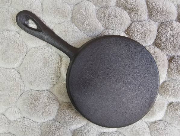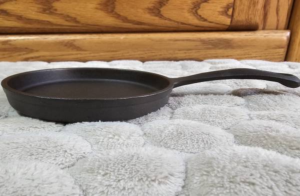 Better than new cuz you don't have to worry about factory seasoning failure - this skillet has been stripped down to bare iron and had 4 layers of seasoning baked on. It's ready and waiting to impress even the most discriminating palate. NO CRACKS, WARPS, OR WOBBLES