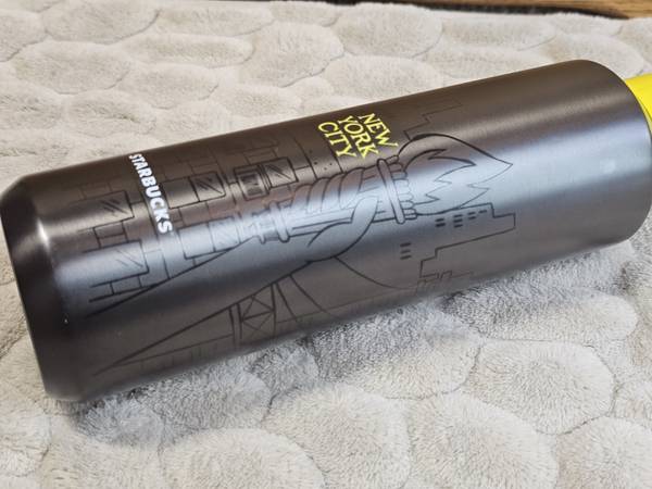 Crafted for convenience and style, the Starbucks New York City Water Bottle is a sleek addition to your daily essentials. This 20 FL OZ vacuum insulated tumbler features a durable stainless steel construction, designed to keep your cold beverages at the desired temperature for longer. Its striking graphite and yellow color palette, adorned with a novelty NYC pattern, is sure to stand out in your cabinet or on your desk. Ideal for all occasions, the tumbler's cylindrical shape and comfortable single-service design make it a practical choice for anyone on the go. Whether you're at work, hitting the gym, or exploring the city, this tumbler is an eco-friendly and stylish way to sip in style.