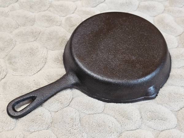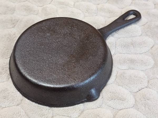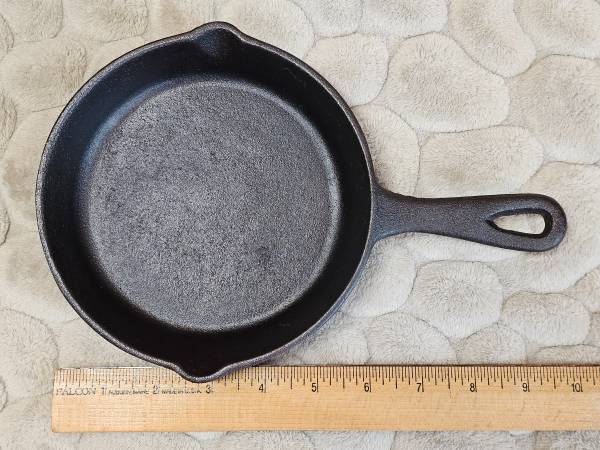 Better than new cuz you don't have to worry about factory seasoning failure - this skillet has been stripped down to bare iron and had 4 layers of seasoning baked on. It's ready and waiting to impress even the most discriminating palate. NO CRACKS, WARPS, OR WOBBLES