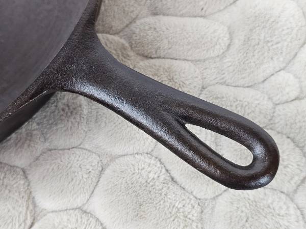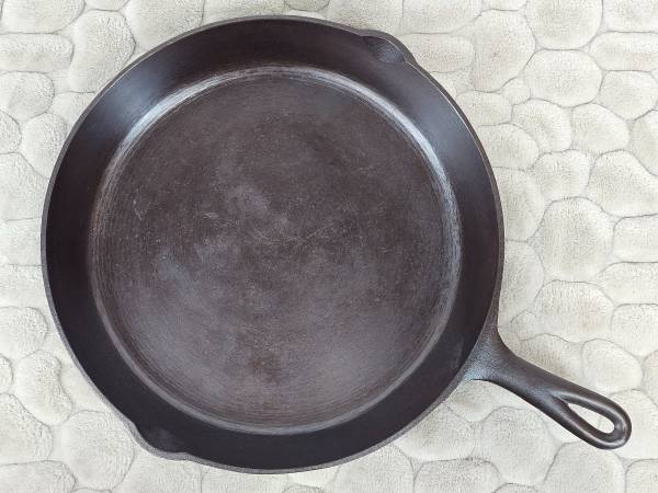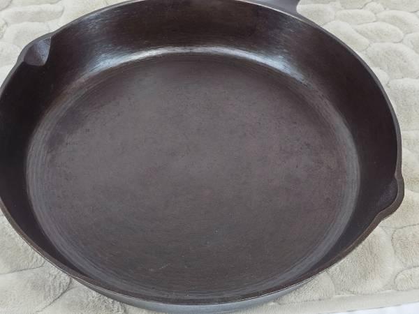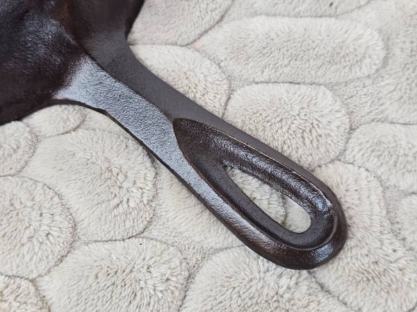 Better than new cuz you don't have to worry about factory seasoning failure - this skillet has been stripped down to bare iron and had 4 layers of seasoning baked on. It's ready and waiting to impress even the most discriminating palate. NO CRACKS, WARPS, OR WOBBLES