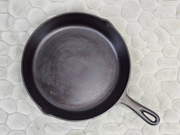 Better than new cuz you don't have to worry about factory seasoning failure - this skillet has been stripped down to bare iron and had 4 layers of seasoning baked on. It's ready and waiting to impress even the most discriminating palate. NO CRACKS, WARPS, OR WOBBLES