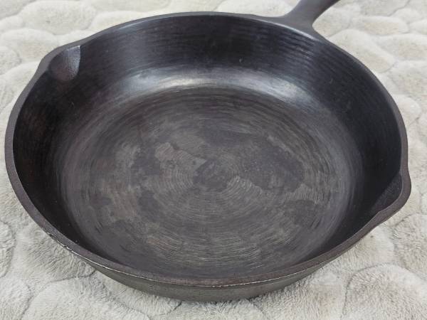 Better than new cuz you don't have to worry about factory seasoning failure - this skillet has been stripped down to bare iron and had 4 layers of seasoning baked on. It's ready and waiting to impress even the most discriminating palate. NO CRACKS, WARPS, OR WOBBLES