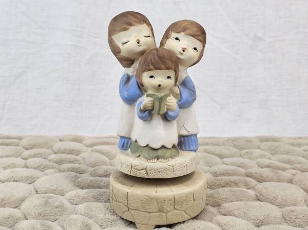 The Vintage Christmas Carolers Music Box Figurine is a charming and nostalgic piece that hails from the mid-20th century. Made of ceramic, this collectible item was crafted in Japan during the 1940s-1960s. With its quaint design and festive Jingle Bells melody, this music box figurine captures the essence of Christmas past and adds a touch of vintage flair to any holiday décor. Plays a bit slow, but probably could use a good cleaning and may make it more "perky"! Perfect for collectors of decorative music boxes or fans of traditional Christmas carols, this unique piece is a delightful addition to any home during the holiday season. Very nice vintage condition.