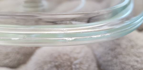 Pyrex lid (large chips on inside of inner lip at one corner and extending @ 3"- see photo)