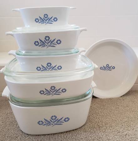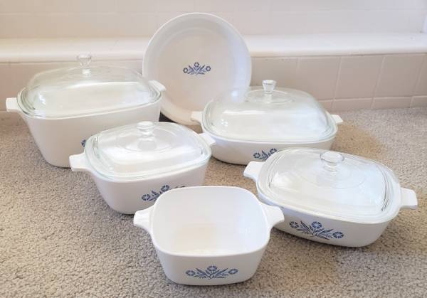 P Series dated 1966-1969 Corning Ware Blue Cornflower Set - SOLD AS SET. WILL NOT SEPARATE!