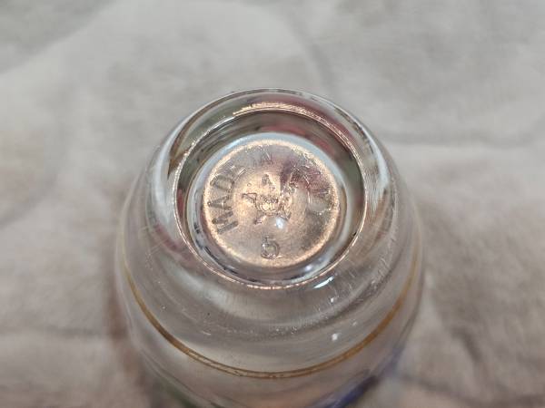 Markings on bottom of glass - all have a star in the middle with "Made in Italy" around the outer edge, although each glass has a different number which is also on the outer edge surrounding the star.